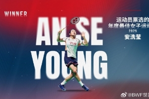 体育资讯12月15日讯 2025年世界羽联年度最佳运动员获奖名单公布,安洗莹当选运动员票选的年度最佳女子运动员。