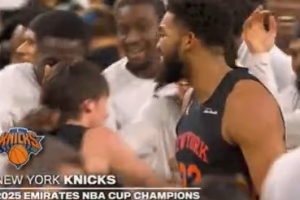 GIF-尼克斯球员戴上冠军帽