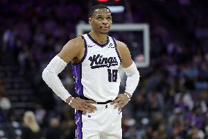 上半场,国王后卫威少出场15分钟4投3中,拿到6分2篮板5助攻,正负值-10。