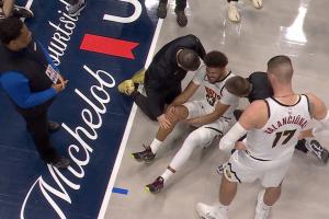 相关新闻>>>重伤!卡梅隆·约翰逊落地膝盖外掰痛苦倒地!一瘸一拐提前离场