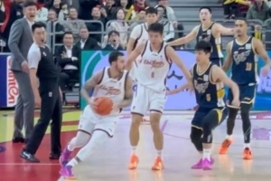比赛最后阶段,裁判曾通过多次回看,界定广东球员陈家政三分踩线为长两分。