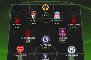 中场:埃利奥特·安德森(诺丁汉森林)、帕尔默(切尔西)、汉尼拔·梅布里(伯恩利)