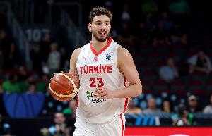 上半场比赛,土耳其中锋申京出战18分45秒,投篮11中2,三分1中0,罚球2中1,得到5分9篮板6助攻2抢断1盖帽。