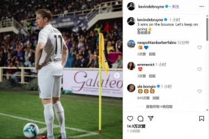 德布劳内写道“:连胜3场!让我们继续加油👍”
